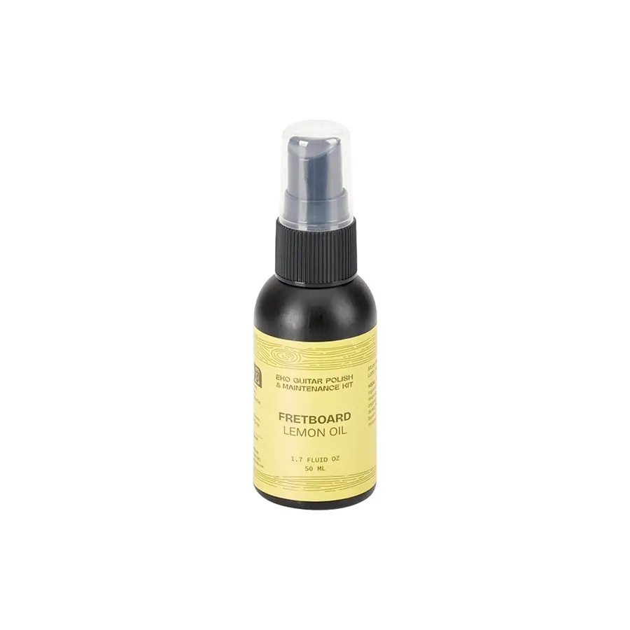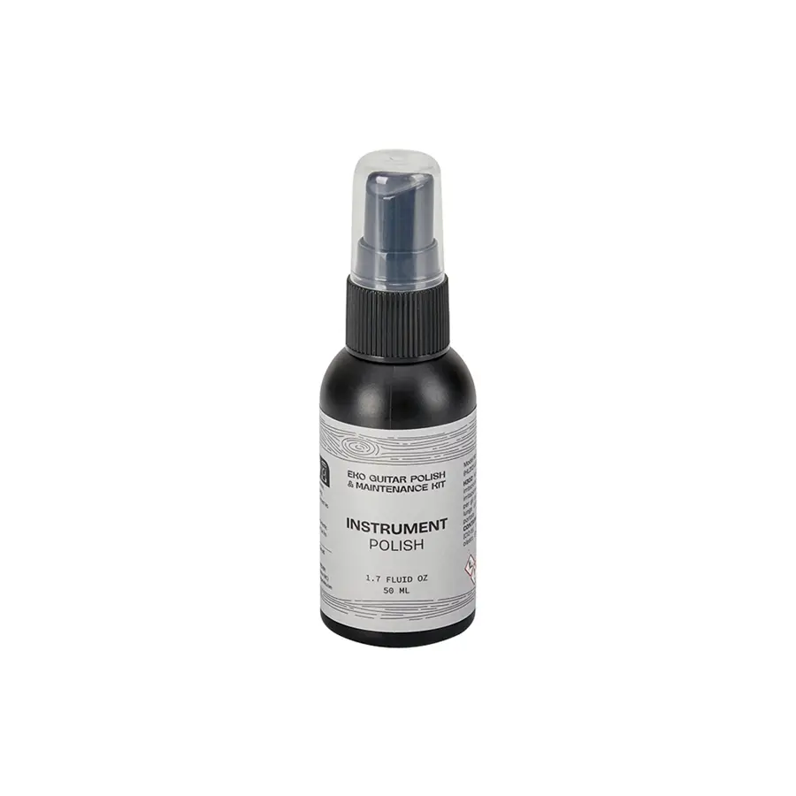 The Polish and Maintenance Kit is the kit of guitar cleaning and care products from Eko Guitars consisting of a 50 ml lemon oil spray for cleaning the fingerboard, a 50 ml spray for cleaning the strings, a 50 ml spray for cleaning the body and two cloths for spreading and drying the products.