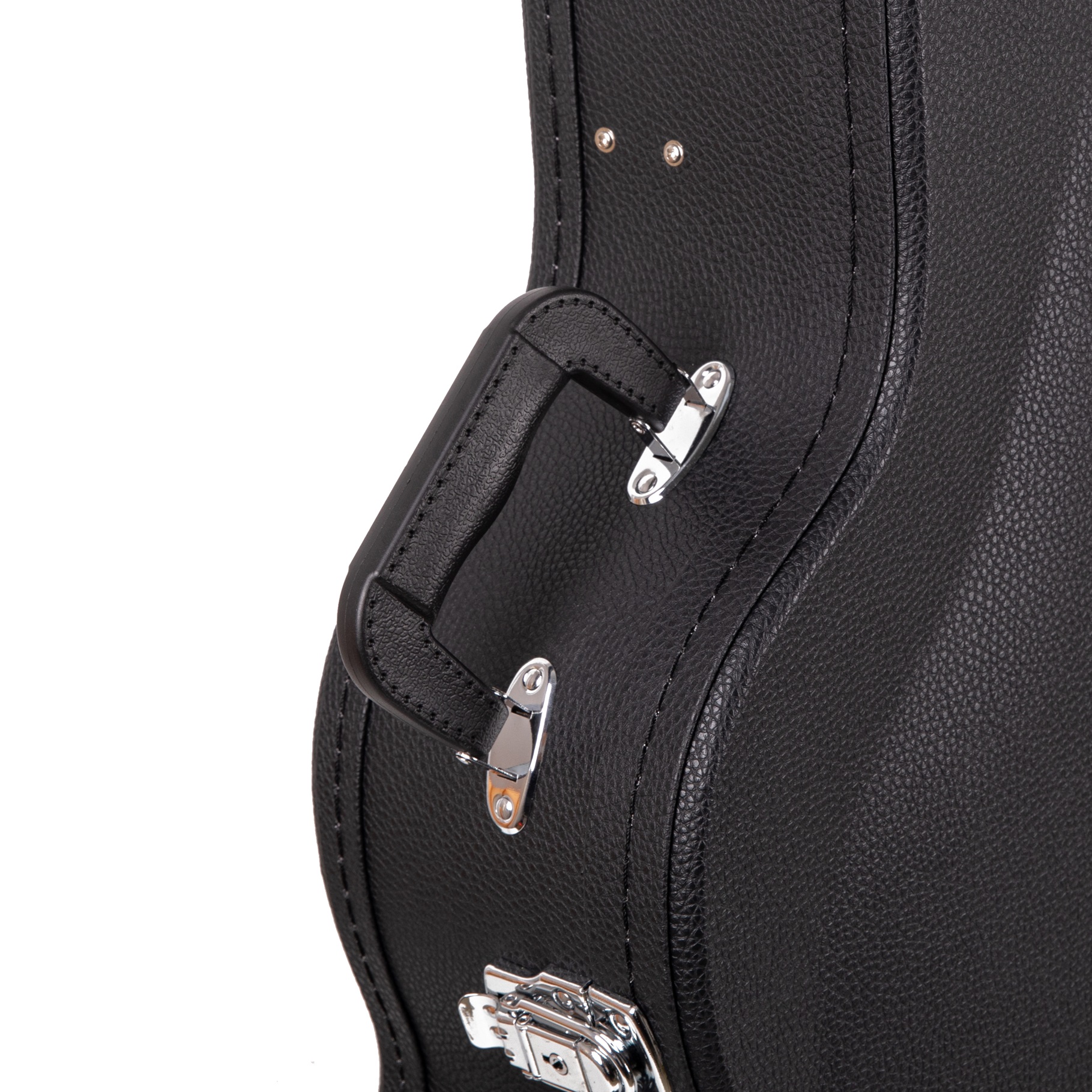 For comfort and convenience, the carry handle is positioned to balance the guitar during transit.